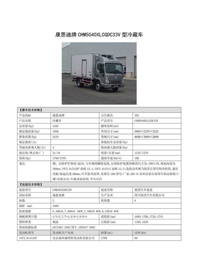 四川現代4米冷藏車