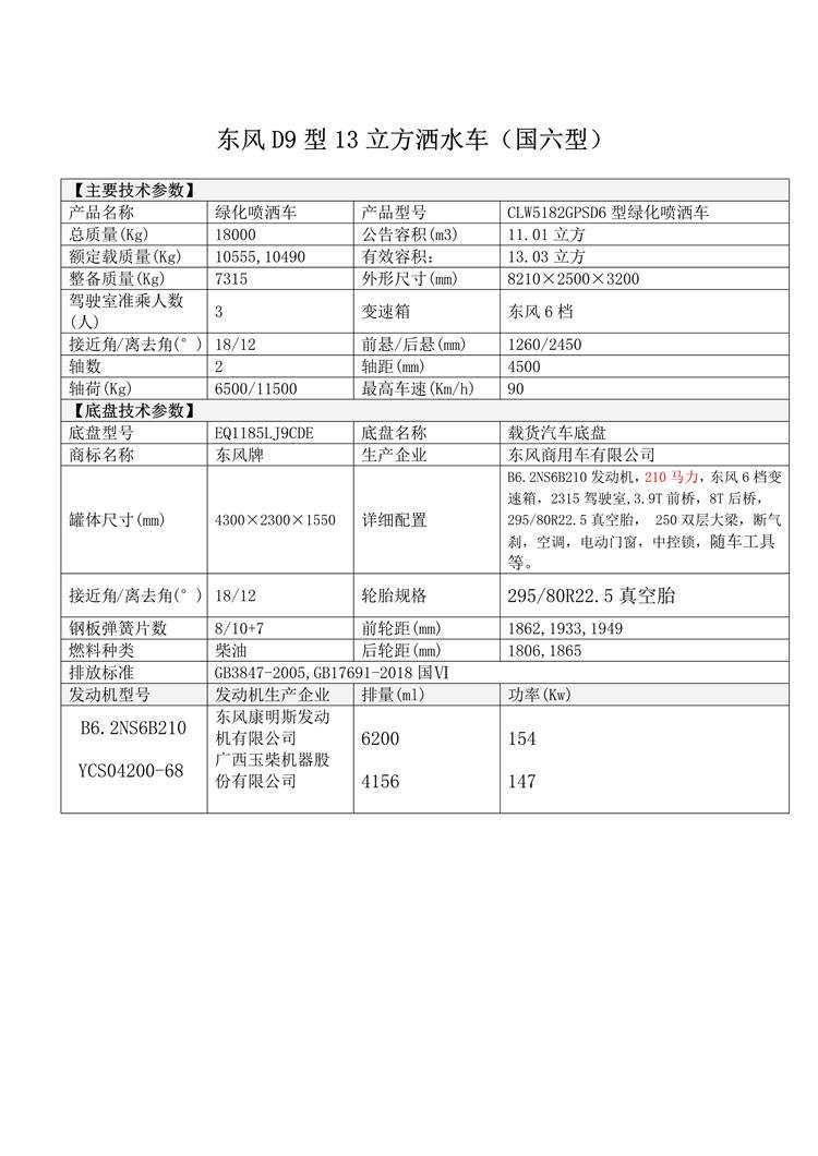 東風(fēng)D9型13立方灑水車